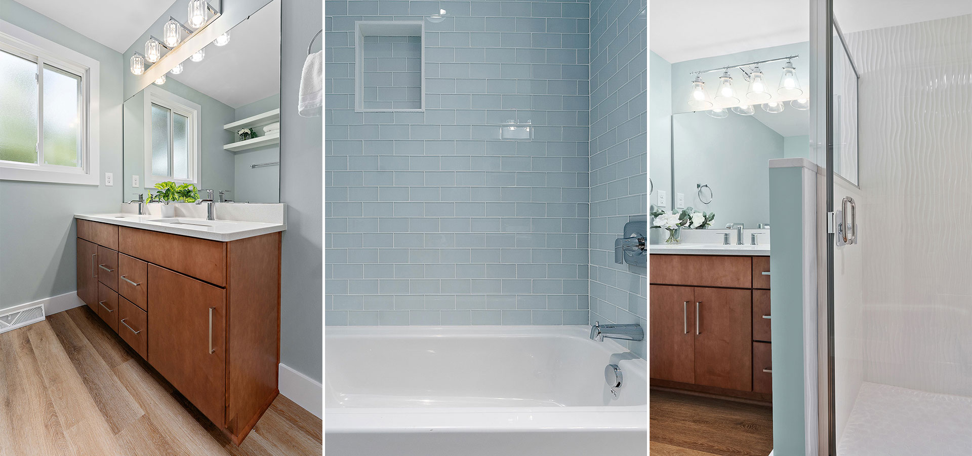 Older layouts or decor can be reworked to function for modern homeowners. Bulky jacuzzi tubs can be replaced by sleek, walk-in showers with glass walls to visually open a space, floor to ceiling tile can make a room feel larger, water closets can be created for privacy, heated floors can be installed for warmth.
